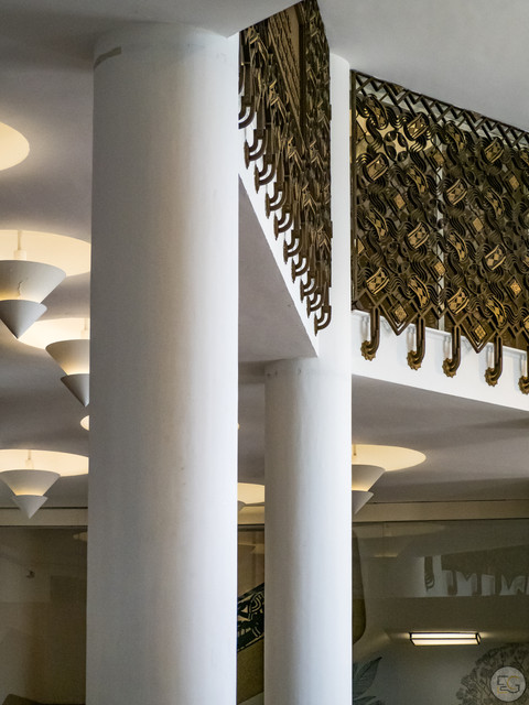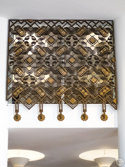 Détails des ferronneries en claire-voie de Raymond Subes situé en surplomb du hall d'honneur.