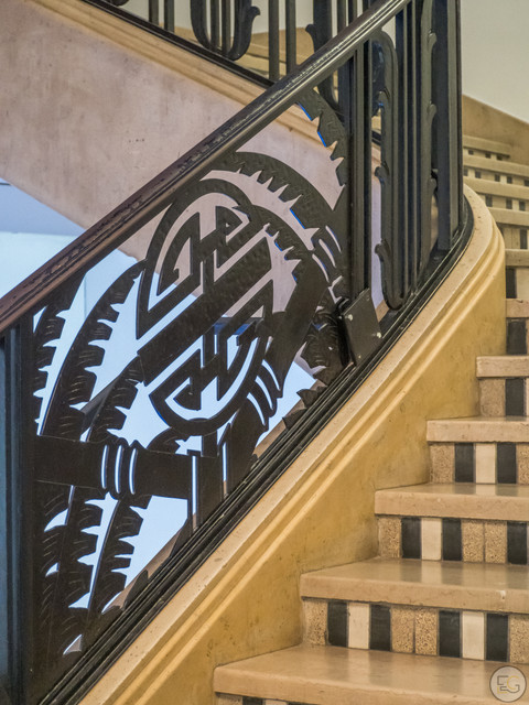 Les nombreuses ferronnerie du Palais réalisées par les plus grands noms de la période sont visibles des les espaces de circulation du Palais.